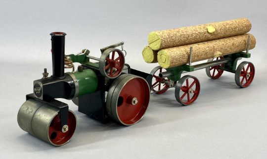 MAMOD LIVE STEAM ROLLER SR1A, BOXED WITH ACCESSORIES, and a Mamod lumber wagon LW1 with logs, boxedProvenance: private collection Denbighshire