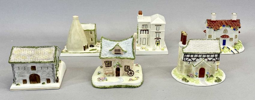 COLLECTION OF NINETEEN COALPORT PASTILLE BURNERS, in the form of cottages and other buildingsProvenance: private collection Conwy