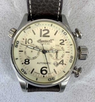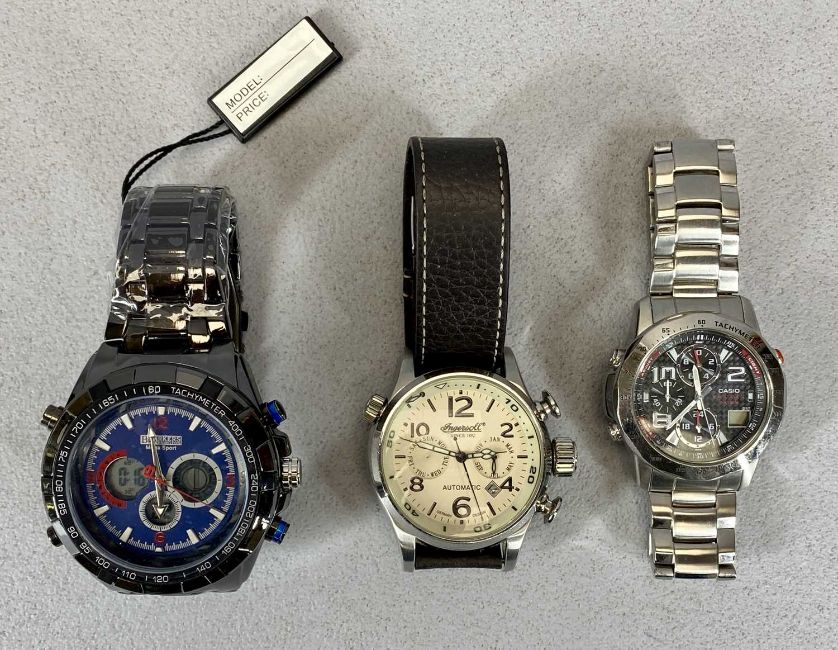 THREE GENTLEMAN'S MODERN WRISTWATCHES, comprising a boxed 'Barkers of Kensington' Megasport in apparently new condition, an Ingersoll automatic with brown leather strap, product code IN1809 limited edition, and a Casio Wave Ceptor alarm dual time chronograph with stainless steel bracelet, 52mm, 45mm and 44mm case diam. respectivelyProvenance: private collection Gwynedd