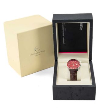 CHRISTOPHER WARD C7 RAPIDE CHRONOGRAPH MKII WRISTWATCH, Ltd Ed (11/300), the metallic red dial with silvered silvered Arabic numerals. three subsidiary dials and date aperture, 42mm case, Christopher Ward brown leather strap in box with booklet and invoice dated 2013Provenance: private collection CarmarthenshireComments: good overall condition, surface wear and scratches to reverse, box and interior slightly perishing, not tested long term