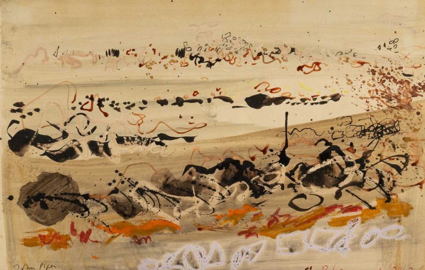 ‡ JOHN PIPER mixed media - abstract coastal landscape, signed, 34 x 52cmsProvenance: private collection, LondonComments: framed & glazed, ready to hang