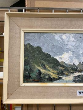 ‡ CHARLES WYATT WARREN oil on board - Eryri (Snowdonia) landscape with cottages, signed 23.5 x 54cmsProvenance: private collection, Shropshire, consigned via our Colwyn Bay officeComments: framed, ready to hang Condition Report:the frame has some staining