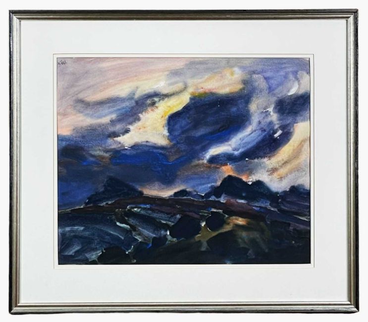 ‡ SIR KYFFIN WILLIAMS RA watercolour - entitled verso, 'Evening Storm', signed with initials, 39 x 48cmsProvenance: private collection, StockportComments: framed and glazed, ready to hang