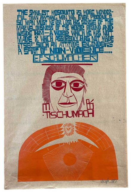 ‡ PAUL PETER PIECH three colour lithograph - quote form British economist E.F.Schumacher CBE entitled 'The Smallest Mosquito', signed and dated 1987, 75 x 50cmsProvenance: private collection overseasComments: unframed