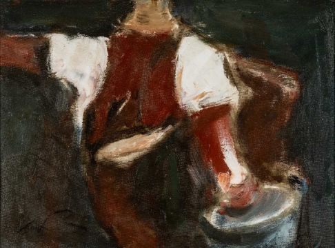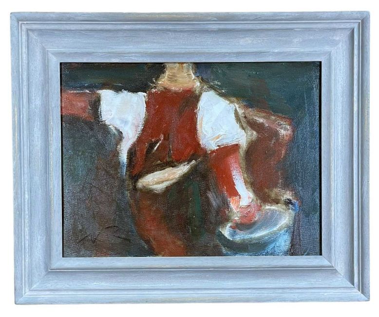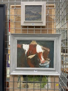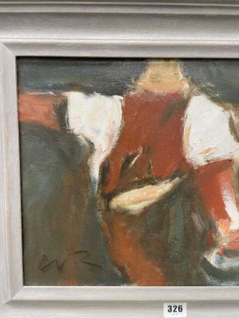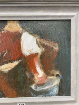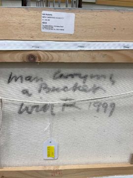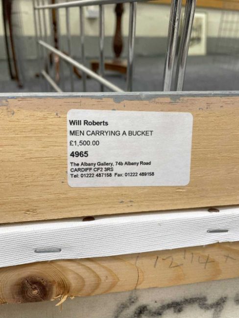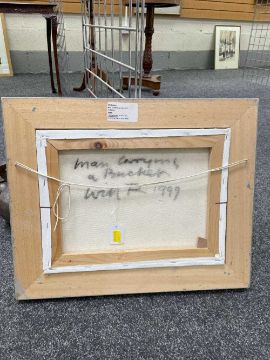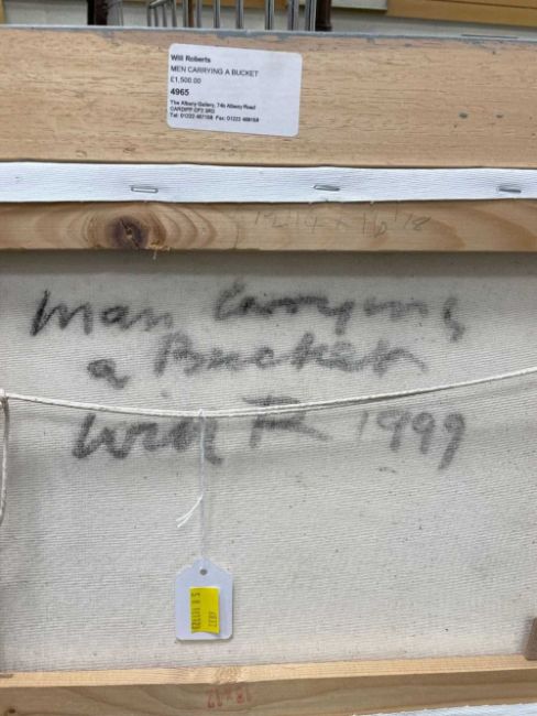 ‡ WILL ROBERTS oil on canvas - entitled verso, 'Man Carrying a Bucket', on Albany Gallery label, signed with initials, signed and dated 1999 verso, 29.5 39.5cmsProvenance: private collection, consigned via our Cardiff officeComments: framed, ready to hang