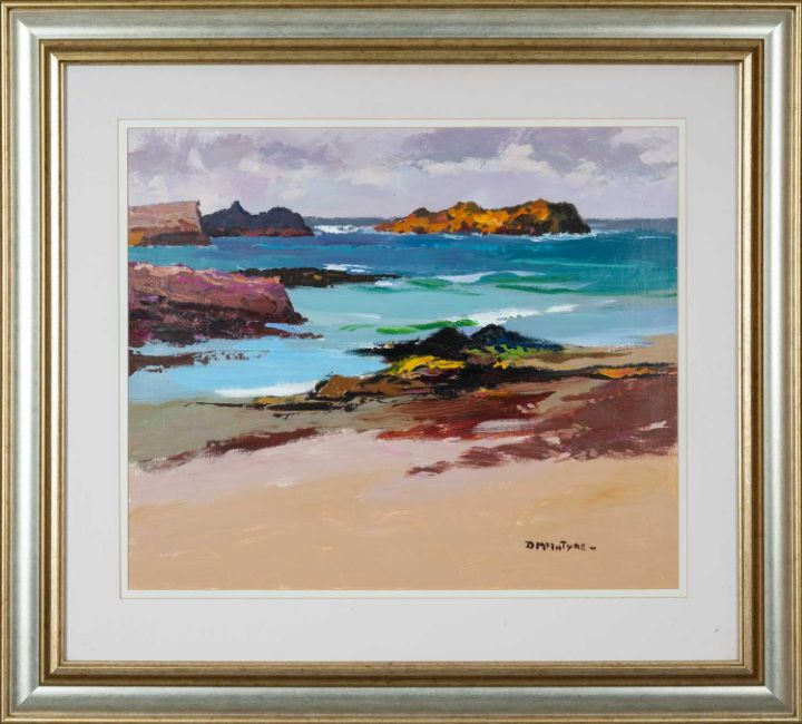 ‡ DONALD McINTYRE acrylic - entitled verso 'Isle of Tangles, Iona', signed, 53 x 63cmsProvenance: private collection, ScotlandComments: framed and glazed, ready to hang