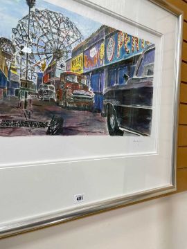 ‡ BOB DYLAN (American, b.1941) limited edition (50/295) print - entitled 'Amusement Park Alley', part of the Beaten Path Series, signed, 43 x 66cmsProvenance: private collection West WalesComments: framed and glazed, ready to hang, certificate of authenticity verso from The Washington Green Fine Art Gallery