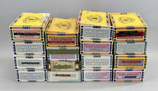 MIXED MODELS COLLECTIONS & QUANTITY OF EMPTY VINTAGE CIGAR BOXES, lot includes 2 x hand built motorised boats, 90cms L (the longest), 2 x smaller models of dinghies and 4 x boxed model airplane kits, appearing unused (unchecked), comprising a US navy DC-3 and an AT-6 Texan by Monogram, 1/72 NAT-6G Texan by Heller and a Boeing Kaydet by Revell