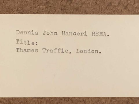 DENNIS JOHN HANCERI RSMA (1928-2011) watercolour - titled 'Thames Traffic, London', signed, 22 x 34cms