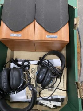MARANTZ SEPARATES HI-FI SYSTEM with ebonised unit, comprising model 6025 turntable, CD-42 mark 2 compact disc player, 2050L stereo tuner, model 5000 stereo cassette deck and model 1050 console stereo amplifier, no plugs attached, small pair of Mission M30 speakers, 2 x pairs of earphones and associated product booklets