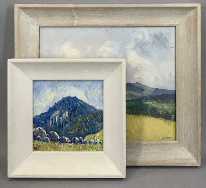 SEIRIOL DAVIES (British, 20th Century) two oils on canvas - titled verso 'Tryfan', dated '93 lower left, 14.5 x 14.5cms, and 'Yr Wyddfa', signed and dated '85 lower right, 24 x 29.5cms