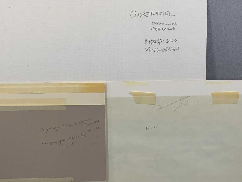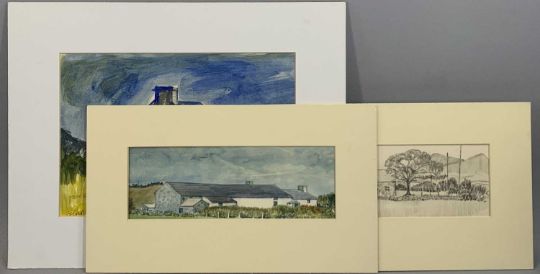 SEIRIOL DAVIES (British, 20th Century) gouache - titled verso 'Gwreiddiol Ynys Enlli 2000', signed and dated lower left, 20 x 29cms, watercolour - titled verso 'Parciau Rhos Bethel', titled and inscribed lower right, 17.5 x 31.5cms, and pencil drawing - titled verso 'Crymlwyn Bach, Rhos Fawr, Gwynedd 1988', titled and with inscription and date lower right, 19.5 x 32.5cms