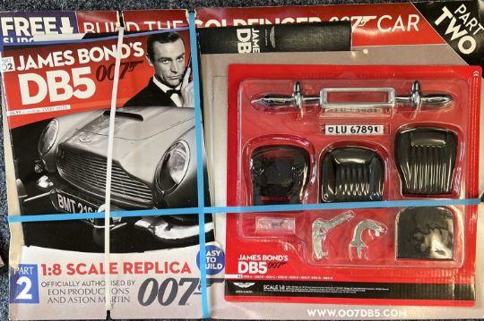 AMENDED DESCRIPTION - EAGLEMOSS COLLECTIONS JAMES BOND'S DB5 ASTON MARTIN 'BUILD THE GOLDFINGER CAR', with associated magazines, all parts unbuilt and in original packaging, 1 - 86 Provenance: private collection GwyneddComments: parts packages appear to be unopened but we cannot guarantee contents are intact