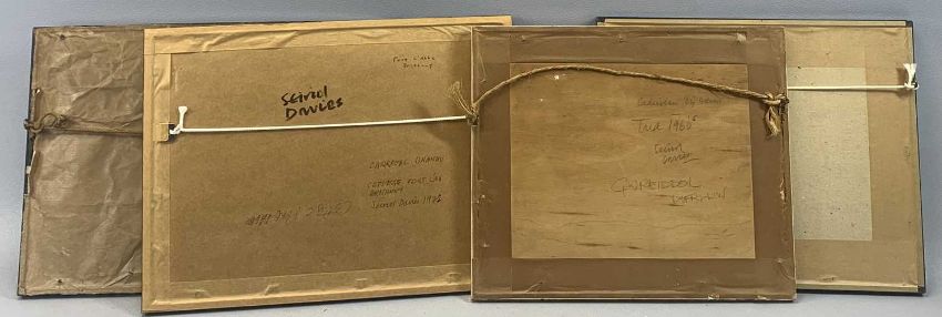SEIRIOL DAVIES (British, 20th Century) charcoal drawing - Pont-l'Abbé Cottage, Pont-l'Abbé Brittany, signed and dated 1972 lower right, 13.5 x 25cms, pen drawing - Liverpool Cathedral, signed and dated '46 lower right, 16 x 24.5cms, pen and watercolour - church, signed and dated 1989 lower right, 13 x 19cms and pen and watercolour - church with inscription verso, 12 x 16.5cms