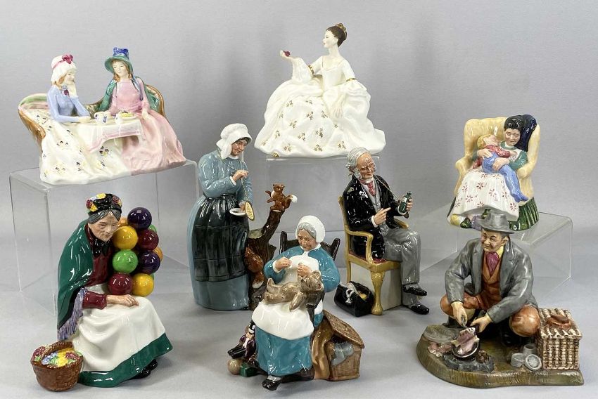 EIGHT ROYAL DOULTON FIGURINES, 'Nanny' HN2221, 'The Doctor' HN2858, 'My Love' HN2339, 'Good Friends' HN2783, 'Sweet Dreams' HN2380, 'Bon Appetit' HN2444, 'The Old Balloon Seller' HN1315 and 'Afternoon Tea' HN1747