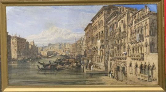 JOSEPH JOSIAH DODD (British, 1809-1880) watercolour with pen and ink - titled 'Grande Canal and Bridge of the Rialto, Venice', signed 'J J Dodd, Bangor, North Wales, 1873' lower centre, 42 x 71.5cms