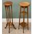 FOUR VINTAGE & REPRODUCTION OCCASIONAL FURNITURE ITEMS comprising farmhouse armchair with slightly curved back and shaped arms on turned supports and H-stretcher, 87cms H, 59cms W, 41.5cms seat D, double drop down drawer front piano stool and music sheet contents, 55cms H, 51cms W, 36cms D, oak three-tier planter stand and a reproduction mahogany example on twist supports, 99cms and 101cms H respectively