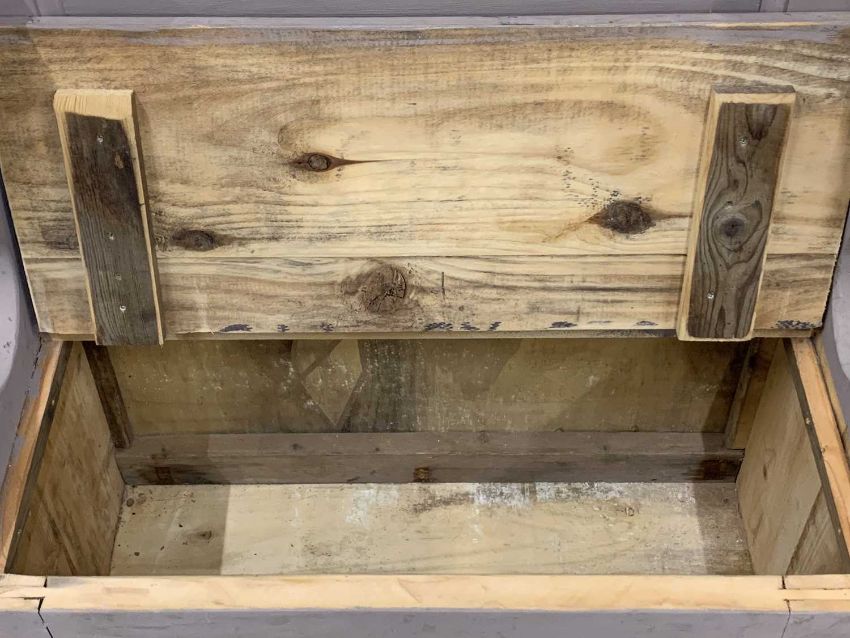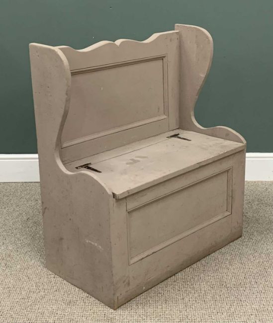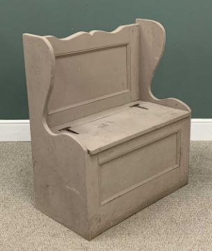 SMALL BOX SETTLE with shaped sides, painted, 95cms H, 82cms W, 44cms D