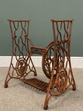 SINGER CAST IRON TREDLE SEWING MACHINE BASE with marble tabletop, 73cms H, 107cms W, 51cms D