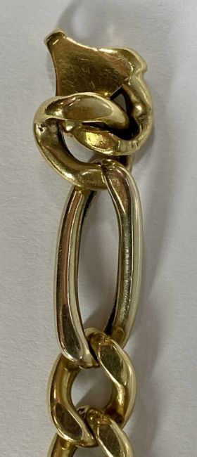 HEAVY YELLOW METAL FIGARO LINK BRACELET with lobster clasp, 21cms L, 20.4g Provenance: deceased estate Conwy