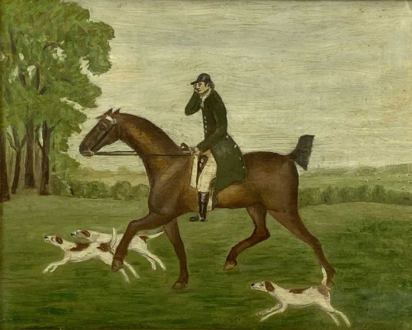 N W PRICE (19th Century) oil on board - mountainous river, figures in lane to side, signed lower left, 23.5 x 33.5cms, impressionist acrylic oil on canvas - cats watching birds out of window, unsigned, 39.5 x 54.5cms, 19th Century naive watercolour - huntsman, horse and hounds, unsigned, 11.5 x 14.5cms, and E AMENA WEBSTER oil on canvas - landscape, signed verso, 25 x 30.5cms