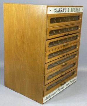 CLARK'S ANCHOR LIGHTWOOD SEVEN-DRAWER ADVERTISING CABINET FOR EMBROIDERY THREADS, 60cms H, 44.5cms W, 37cms D