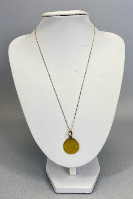 GEORGIAN GOLD SPADE HALF GUINEA, mounted as a pendant with suspension loop, 4.4g gross, with yellow metal chain