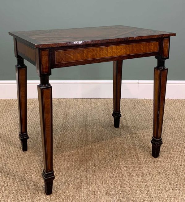 OCCASIONAL FURNITURE: comprising 20th C. Italian neoclassical marquetry side table, 74 (w) x 50cms (d), Sheraton-style revolving mahogany and satinwood crossbanded bookcase, 47cms (w); beech lathe back armchair, beech smoker's chair, and early 19thC. (4)Provenance: private collection Cardiff