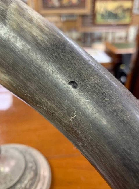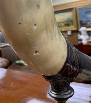 PAIR VICTORIAN HIGHLAND COW HORN CUPS/VASES, mounted in engraved electroplated rims and and pedestal stands, 38cms (h) (2)Provenance: private collection south WalesComments: Both with insect damage, bases worn. Cf. a similar pair sold Bonningtons, 28.6.17 lot 41.