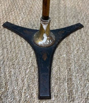 ASSORTED ANTIQUE FURNISHINGS including, lyre shaped folding music stand, Regency style telescopic music stand, painted metal umbrella stand 61h x 26cms dia., cast iron Napoleon door porter, 41cms h (4)Provenance: private collection south WalesComments: telescopic stand: split back panel, general wear and damage, umbrella stand: paint losses, chipped etc, inspection advised
