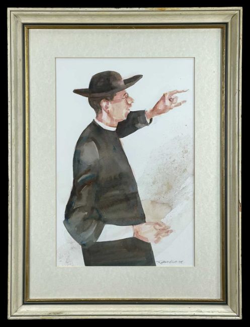 RICHARD A. WILLS watercolour - portrit of a curate, signed in pencil, 50 x 40cmsProvenance: consigned from CardiffComments: framed and glazed.