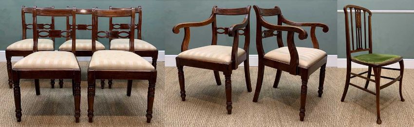 SET EIGHT GEORGE IV MAHOGANY DINING CHAIRS, including 2 armchairs, and an Edwardian salon chair (9)Provenance: private collection south WalesComments: all good condition, please note, seven mahogany chairs pictured, eight included