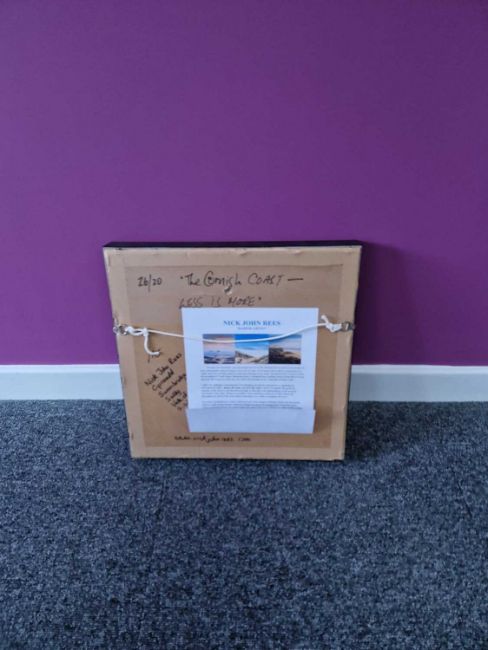 NICK JOHN REES oil on canvas - entitled 'Less is More on the Cornish Coast', 39 x 39cms Comments: black floating frame
