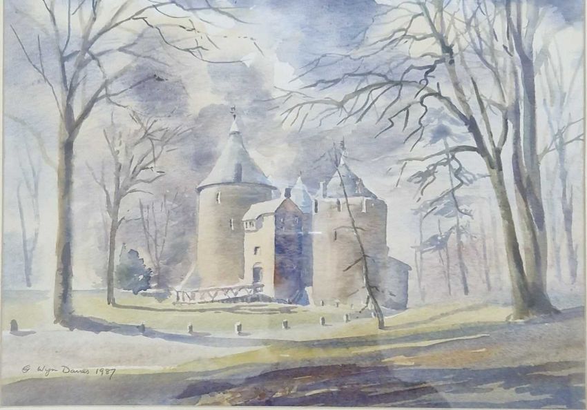 WYN DAVIES watercolour - entitled verso 'Winter at Castell Coch', 44 x 52cms