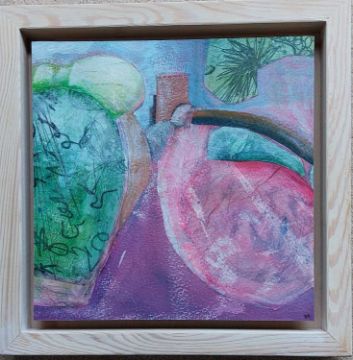 LISA HENDERSON collages, a pair - entitled 'East Portlemouth 2' and 'Rickham 1', 25 x 25cms