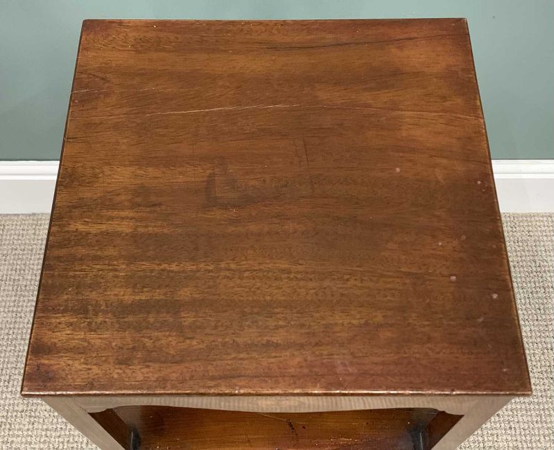 GEORGIAN YEW AND MAHOGANY NIGHTSTAND Sheraton type fan inlay to the front frieze and lower single drawer front, two-tier on square supports, conjoining pierced under tier shelf, 76 (H) x 36 (W) x 35cms (D)Provenance: private collection Denbighshire