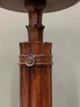 GEORGE IV MAHOGANY & ROSEWOOD CROCUS TABLE manner of Thomas King, leaf-carved detail to the upper dish, fluted and further leaf detail to the column, circular top tri-form foot, 98 (H) x 28cms (top diam.)Provenance: private collection Denbighshire