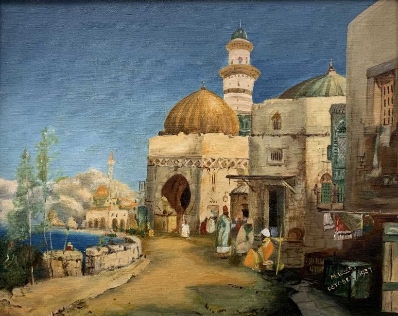 FOURTEEN VARIOUS PAINTINGS AND PRINTS to include Martin Holt limited edition prints x 2, humerous golf course and gymnasium scenes of Jewish people numbered 232/300 and 78/300 respectively, 39 x 53cms, Victorian engraving titled `Stolen by Gipsies The Rescue` painted by J B Burgess ARA engraving begun by the late Charles H Jeens and completed by Lumb Stocks RA, 42 x 62cms, J E Small signed print of a tree-lined riverbank impressionist style, 40 x 28.5cms, M Lowe oil on canvas depicting an Eastern street scene, signed and dated October 1937 lower right, 19 x 24cms, Hiroshige III 19th Century Japanese print, titled `Edo Meisho Zue`, 32.5 x 22cms, Vincent Van Gogh (1853-90) reproduction prints titled Irises on a Yellow Ground and Crown Imperials, 24 x 18.5cms and othersProvenance: deceased estate ConwyComments: framed, framed and glazed