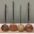 ANTIQUE COPPER & BRASSWARE comprising 2 x long-handled chestnut roasters, both with pierced lids including one in copper with an ebonised handle, 115 (L) x 29cms (diam.), and a brass example with long iron handle along with 2 x copper long wooden handled bed warmers