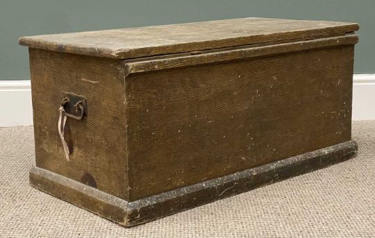 VICTORIAN SCUMBLED PINE BLANKET BOX, iron strap hinges and carry handles, dovetail joints, 40 (h) x 84 (w) x 43.5cms (d)Provenance: deceased estate Gwynedd