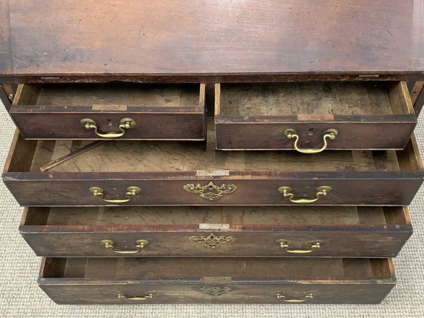 ANTIQUE FURNITURE PARCEL (3), comprising marble top inlaid mahogany wash stand, twin upper frieze drawers, central cupboard, flanking under tier shelves, square tapering supports, brass castors, 78 (h) x 107 (w) x 50cms (d), Georgian mahogany bureau, fall front, fitted interior, two short, three long oak lined drawers, brass pommels and swan neck handles, corner bracket feet, 92 (h) x 94 (w) x 52cms (d), early 19th century oak gateleg dining table, twin flap, square supports, 73 (h) x 125 (l) x 49cms (w) closed, 135.5cms (w) fully openProvenance: private collection Conwy