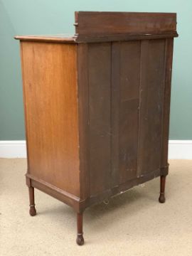 EDWARDIAN MAHOGANY RAILBACK CHEST, two short, three long drawers, turned supports, 116 (h) x 77 (w) x 51cms (d)Provenance: private collection Conwy