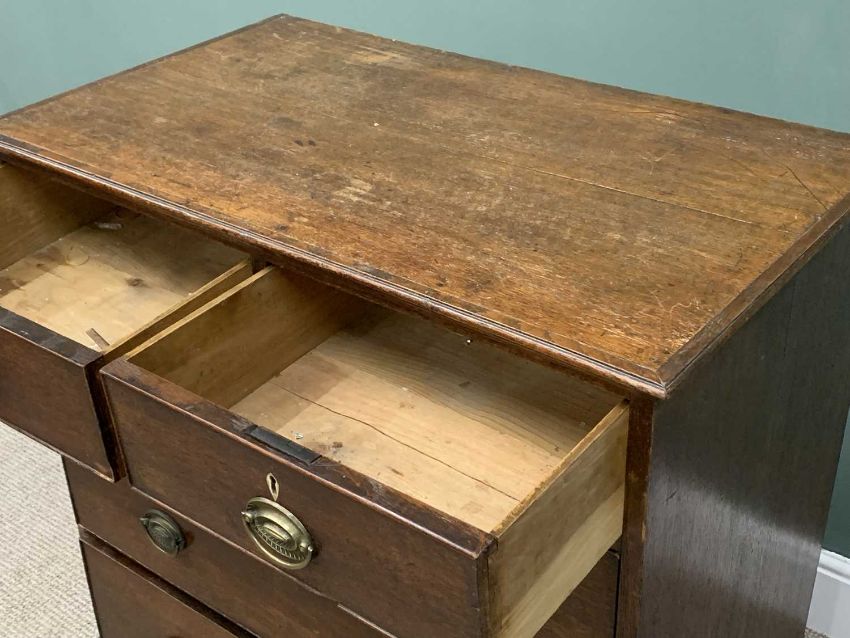 ANTIQUE OAK CHEST OF DRAWERS circa 1850, two short, three long oak lined drawers, cockbeaded edging, ivory escutcheons, replacement Regency brass oval backplates, swing handles, corner bracket feet, 101.5 (h) x 95 (w) x 55.5cms (d)Provenance: private collection GwyneddGOV.UK Ivory content- to comply with current regulation - self-declaration form completed for the sale of this item - Submission reference VETDSY9S