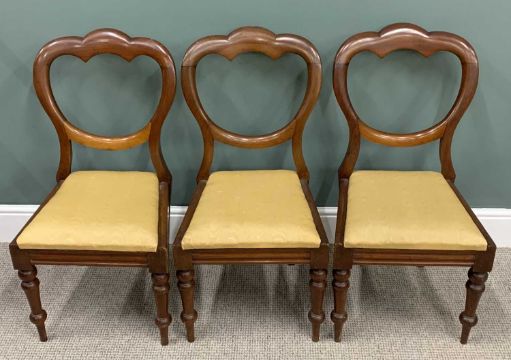 SET OF SIX NEAR MATCHING (4+2) MAHOGANY BALLOON BACK DINING CHAIRS, plus one other for spares or repair, shaped crest rail, drop in re-upholstered seat pads, turned tapering front supports, 89 (h) x 46 (w) x 38cms (seat d)Provenance: private collection Gwynedd