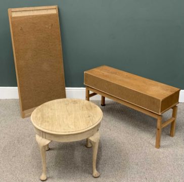THREE OCCASIONAL FURNITURE ITEMS, comprising light wood framed wall mirror, 125 x 160cms, mid-century light wood three drawer console table, open work turned support frame, 52 (h) x 100 (w) x 35cms (d), limed effect circular top table, pad foot supports, 47.5 (h) x 60 (diam. top)Provenance: private collection Gwynedd