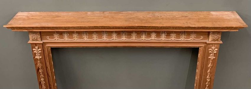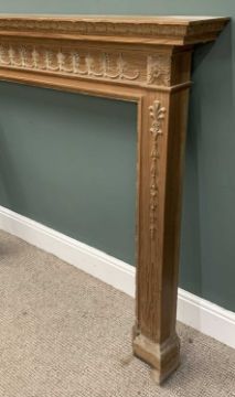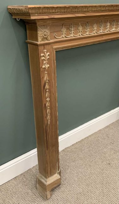 ANTIQUE STYLE PINE FIRE SURROUND, moulded, applied carving, beaded detail, 122 (h) x 147.5 (w) x 19.5cms (max. d) exterior measurements, 98 x 101.5cms interior apertureProvenance: private collection Conwy