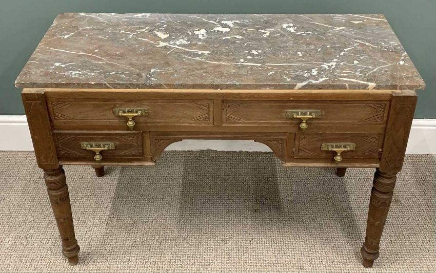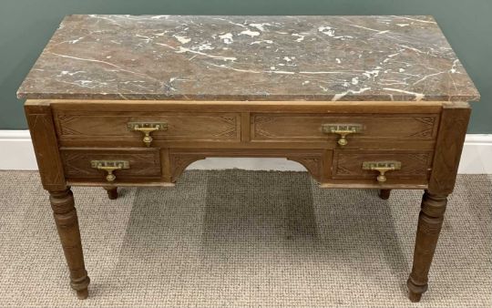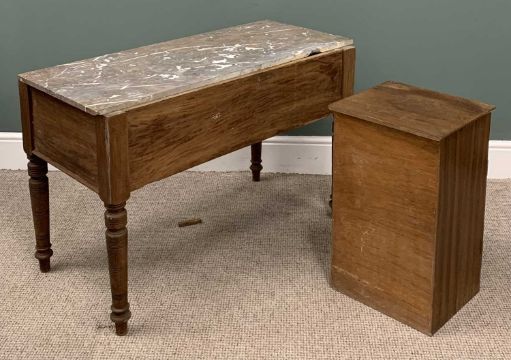 TWO ITEMS OF VINTAGE FURNITURE comprising circa 1900 washstand base, two long, two short drawers, acorn drop brass pulls, turned supports, 67.5 (h) x 103 (w) x 53cms (d), non-associated marble slab top, 107 x 46cms, walnut single drawer, single door bedside cabinet, interior Uniflex label, 61 (h) x 37.5 (w) x 34.5cms (d)Provenance: private collection Conwy