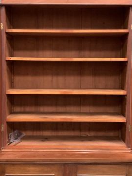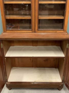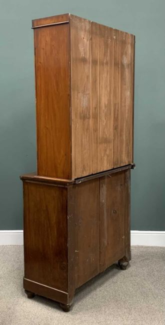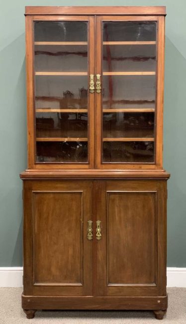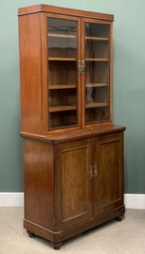MAHOGANY BOOKCASE CUPBOARD circa 1900, twin glazed upper doors, interior adjustable shelving, rounded corners, panelled twin base cupboard doors, interior shelving, turned bun feet, 213 (overall h) x 101 (w) x 50cms (max. d)Provenance: private collection Gwynedd