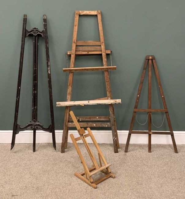 FOUR VARIOUS ARTIST'S DISPLAY/WORK EASELS, 167 x 76cms the largestProvenance: private collection Conwy