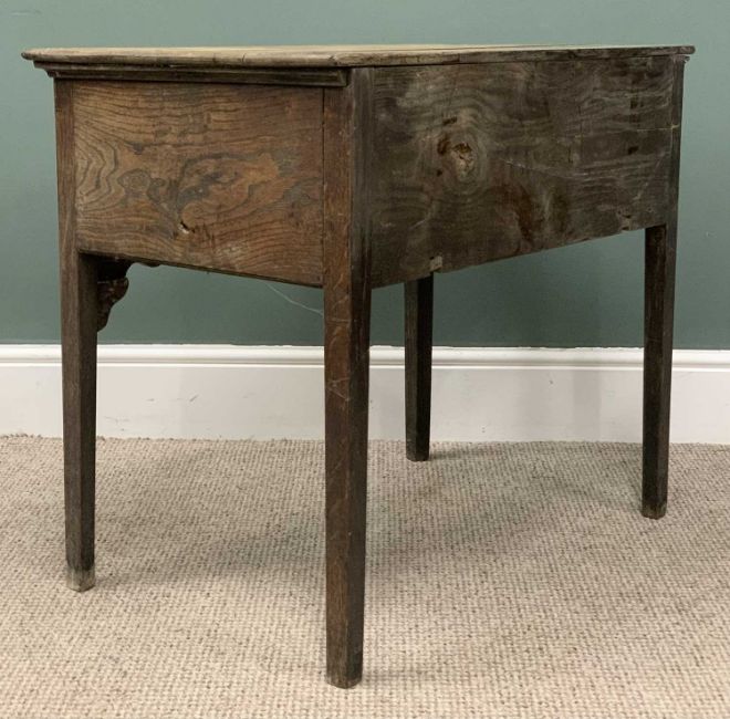 ANTIQUE OAK OCCASIONAL FURNITURE two items, comprising lowboy, rectangular top, blind frieze drawer, twin small opening drawers, brass circular pommels, fancy backplates, swan neck handles, shaped apron, inlaid fan corbel detail, tapering square supports, 70cms (h), 81cms (w), 51cms (d), 13 pane astragal glazed single door wall hanging corner cupboard, painted interior shelves, broken swan neck pediment, canted and reeded corners, 115cms overall (h), 73cms (w), 37cms (d)Provenance: private collection Conwy